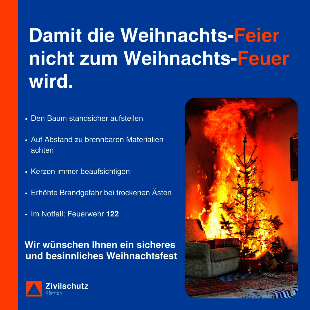 - – auf ausreichenden Abstand von Adventkränzen und Christbäumen zu brennbaren Stoffen achten. Bei einer Entzündung sorgen diese Materialien sonst für eine rasche Brandausbreitung