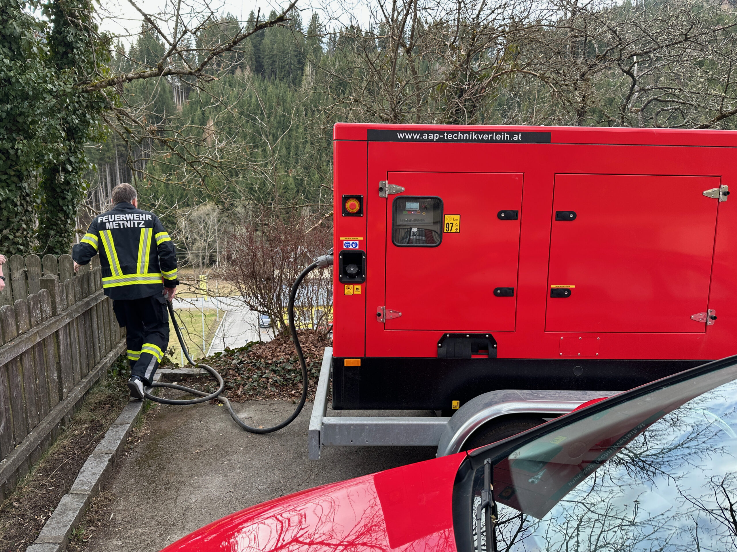 Durch den anhaltenden Sturm kam es im Bereich Metnitz-Ort zu einem großflächigen Stromausfall.